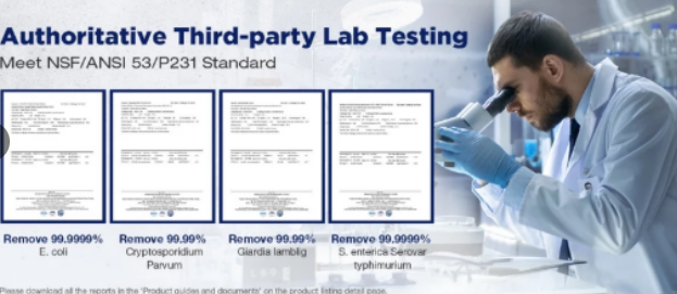 • 去除率高達 99.99999%:雜質、沉澱物、氯、異味、重金屬、有害微生物等