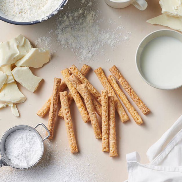 專注手工派餅:選用北海道小麥調配的特殊麵團,手工揉製並反覆摺疊約 1,000 層,打造出酥脆中帶濕潤的細條派。