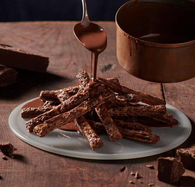 使用濃郁堅果香與焙煎味的可可,巧克力深深滲入派中,口感酥脆濕潤。