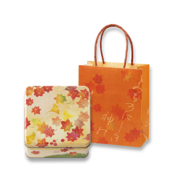 秋季限定款內含楓葉造型米果,並搭配描繪手向山絢麗紅葉的專用手提袋,讓您在品嚐時也能感受濃厚的秋日氣息。