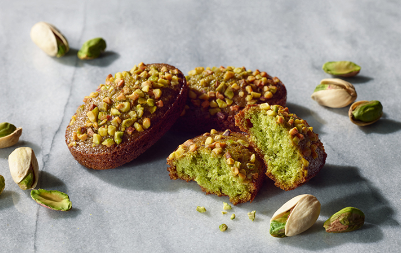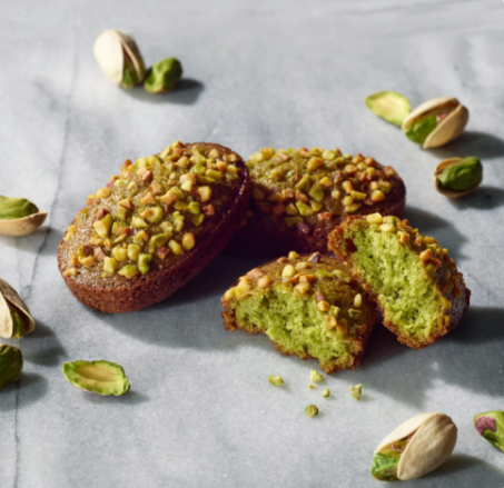 精心烘烤的開心果費南雪蛋糕體,