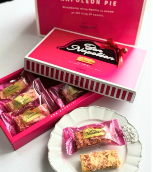 主打推薦首選:六本木芝士千層派與拿破崙夾心餅乾,為最受歡迎的伴手禮商品,外包裝優雅、口感細緻。