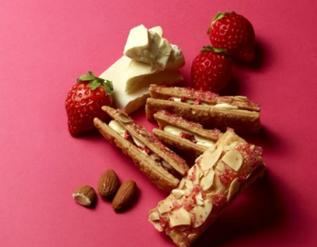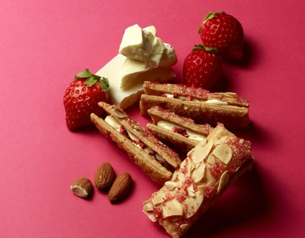 📌拿破崙杏仁夾心餅乾:以拿破崙派(Napoleon Pie)為靈感的招牌商品,餅乾中央夾入白巧克力奶油、乾燥草莓與杏仁片,風味華麗而細緻。