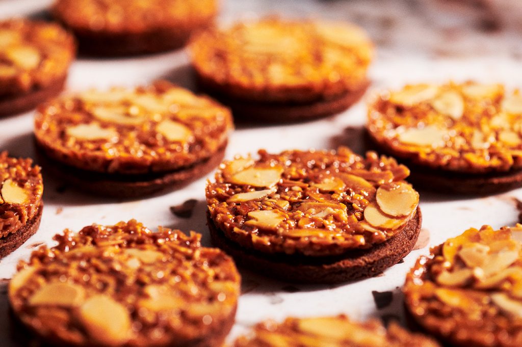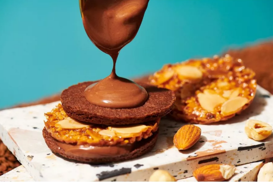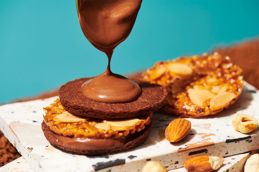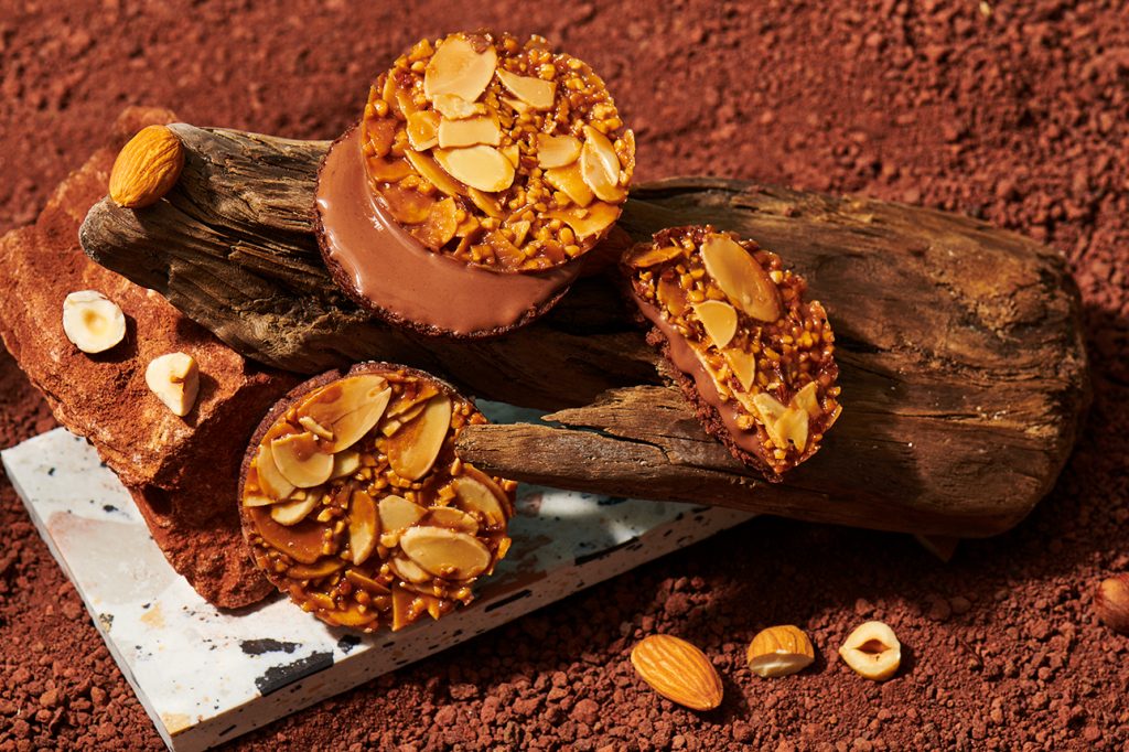 以香脆焦糖杏仁脆餅、入口即化的鬆脆餅乾(Streusel),加上濃郁榛果可可醬三層組合而成,是款顛覆印象的新感覺法式焦糖餅乾。