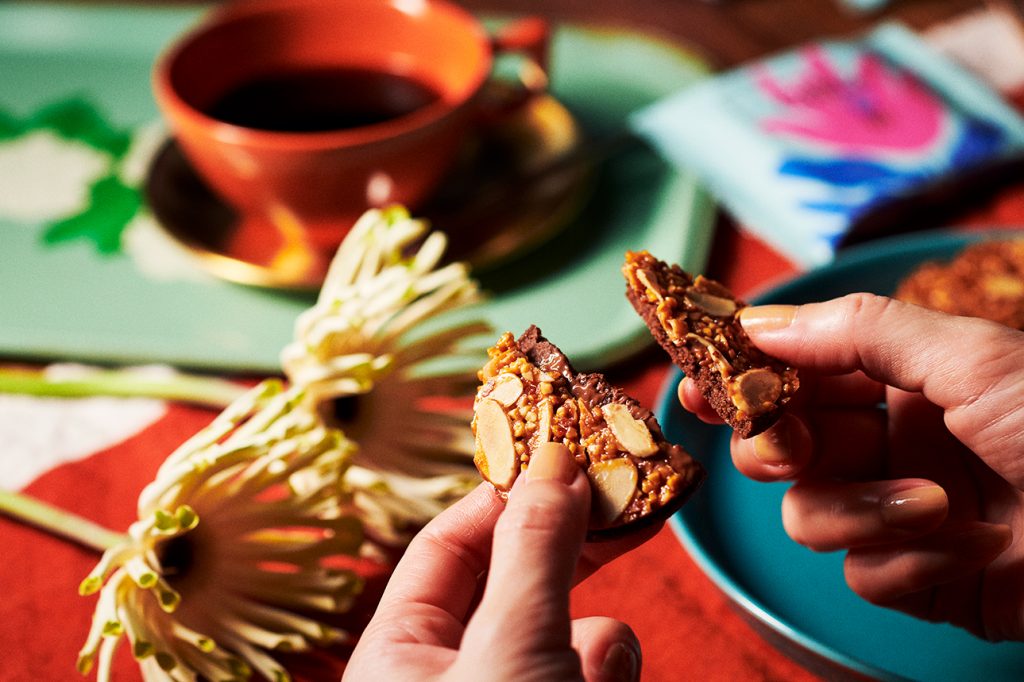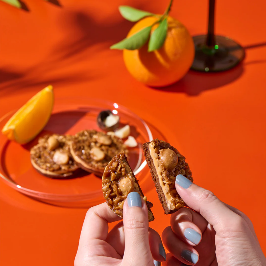 烘烤至香酥的橙皮餅乾,融合果皮微酸與微苦風味,完美襯托堅果的甜美。