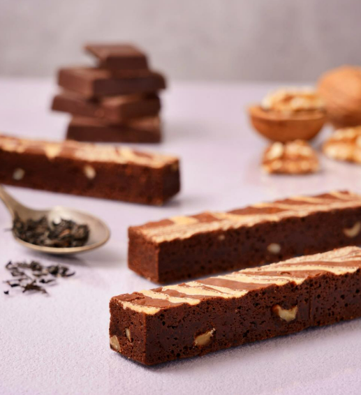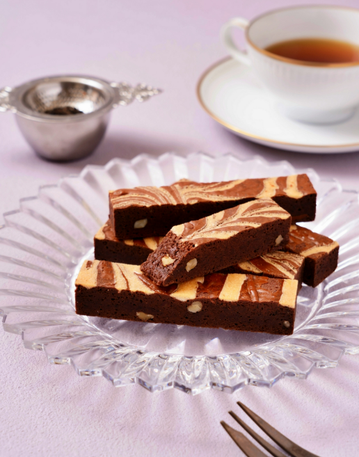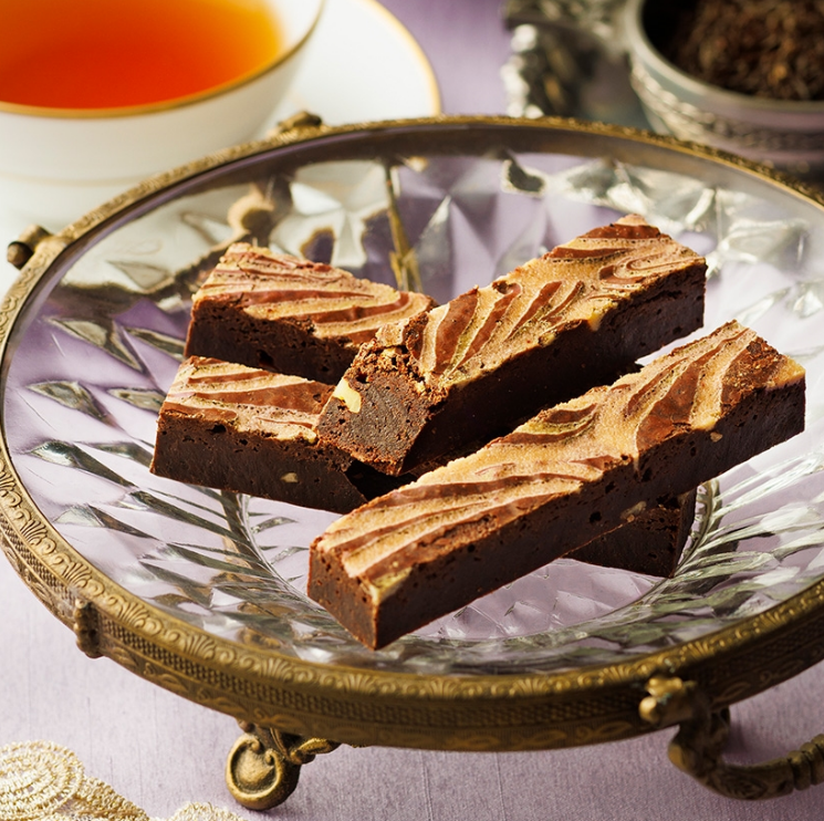 在招牌布朗尼麵糊中加入紅茶風味烘焙而成。