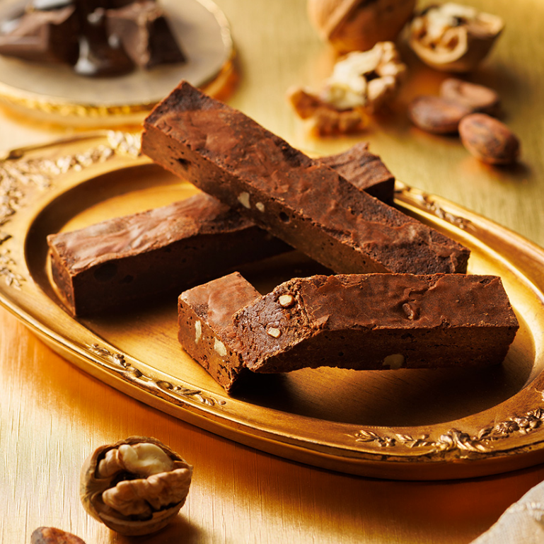嚴選兩種高品質的調溫巧克力(クーベルチュール),揉入布朗尼麵糊中,烘焙出濃郁可可風味的口感。
