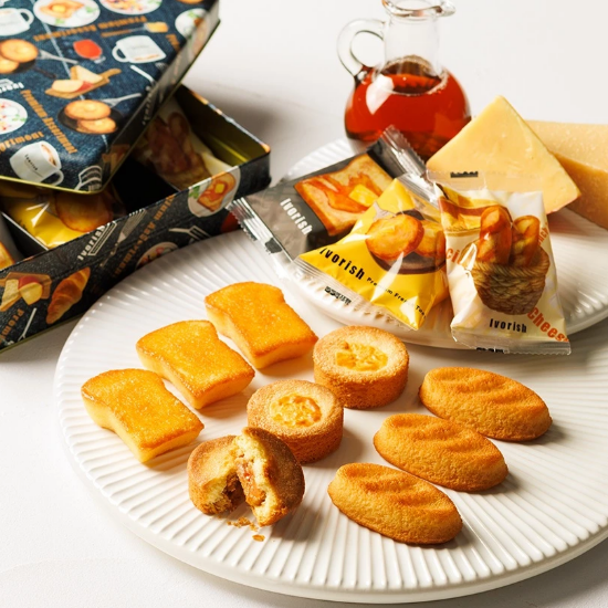 內容物: 吐司造型費南雪5個、起司口味費南雪(法棍造型)5個、法式楓糖奶油餅乾4個