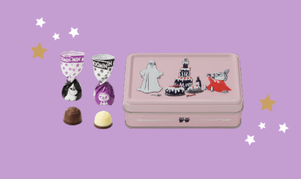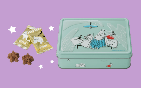 🌟印有嚕嚕米因幻想幽靈而感到害怕的限定鐵盒。鐵盒內裝有酥脆口感的星型穀物脆片巧克力。