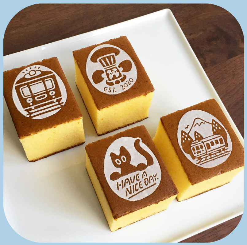 蓬鬆柔軟的蛋糕為一口完食尺寸,每塊上都印有不同的原創插圖。