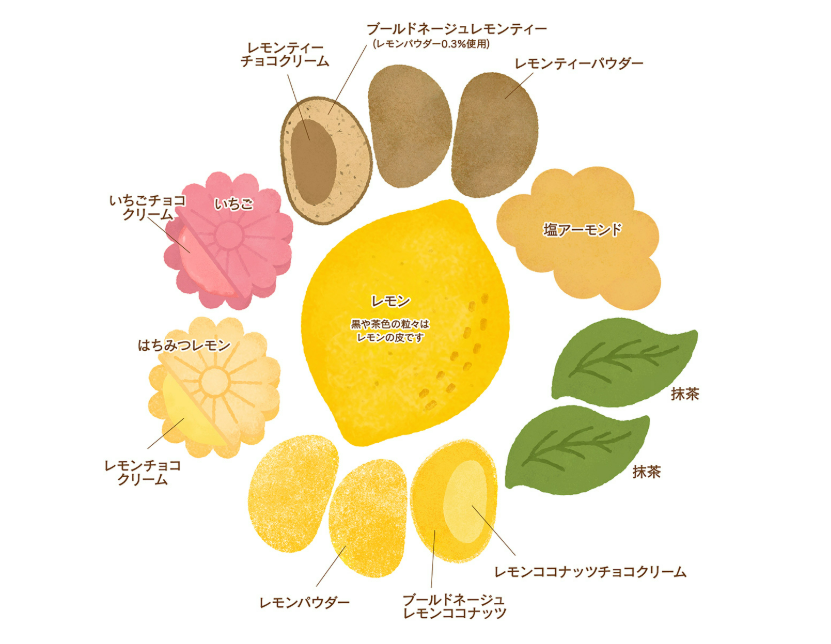 子,檸檬,黃豆粉,草莓,杏仁可可亞,胡椒鹽,可可亞,紅茶,起士
