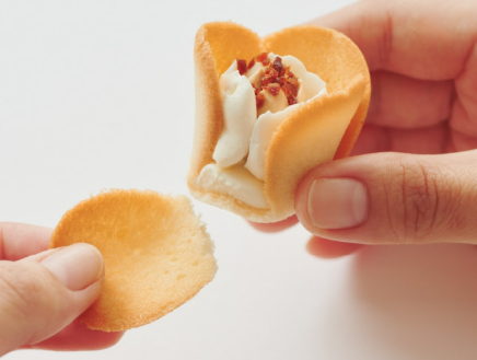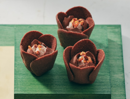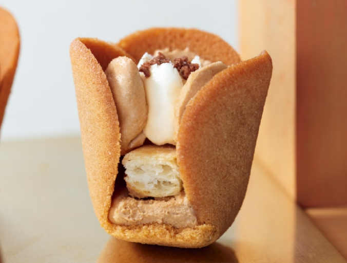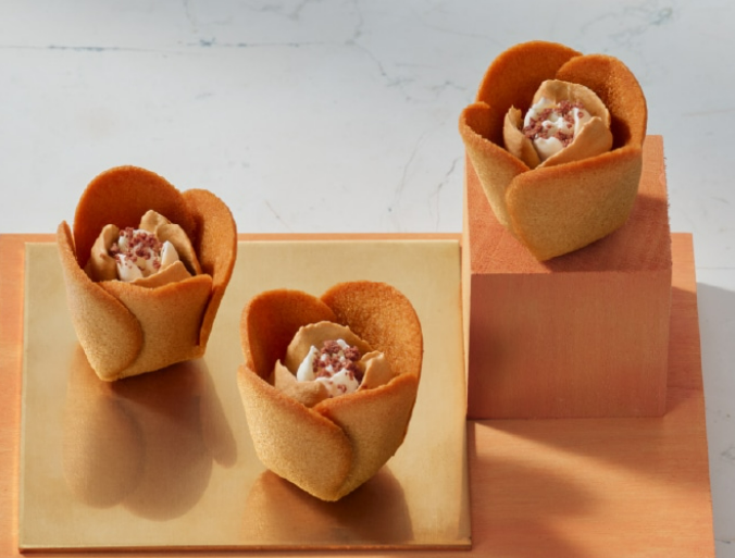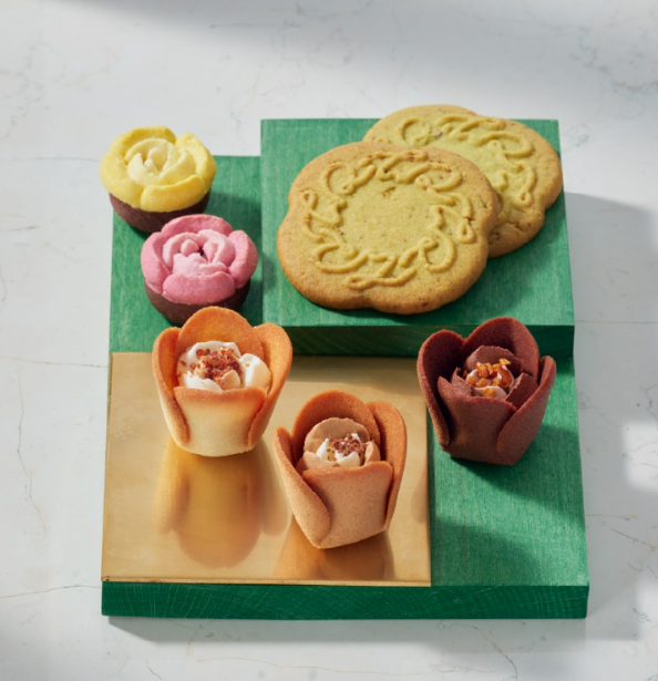 ⦁ 以「鬱金香+玫瑰」為靈感,外層是鬱金香造型的餅乾,內層填入玫瑰般的慕斯或奶油。